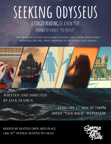 Join us for a staged reading of a new play, “Seeking Odysseus” by Jack Seamus. In this play, we follow the story of The Odyssey, both through the eyes of the titular Odysseus, and through following the stories of those “left behind” during the ten-year Trojan War, including Odysseus’ wife, son, and sister; Helen of Troy, and a displaced Trojan noble. The reading will be followed by a talkback with the playwright and actors. Although a different, written-for-virtual-theatre version of this script was performed by Rainy Day Artistic Collective in 2024, this reading marks the first time that this significantly revised version will be performed for an audience.